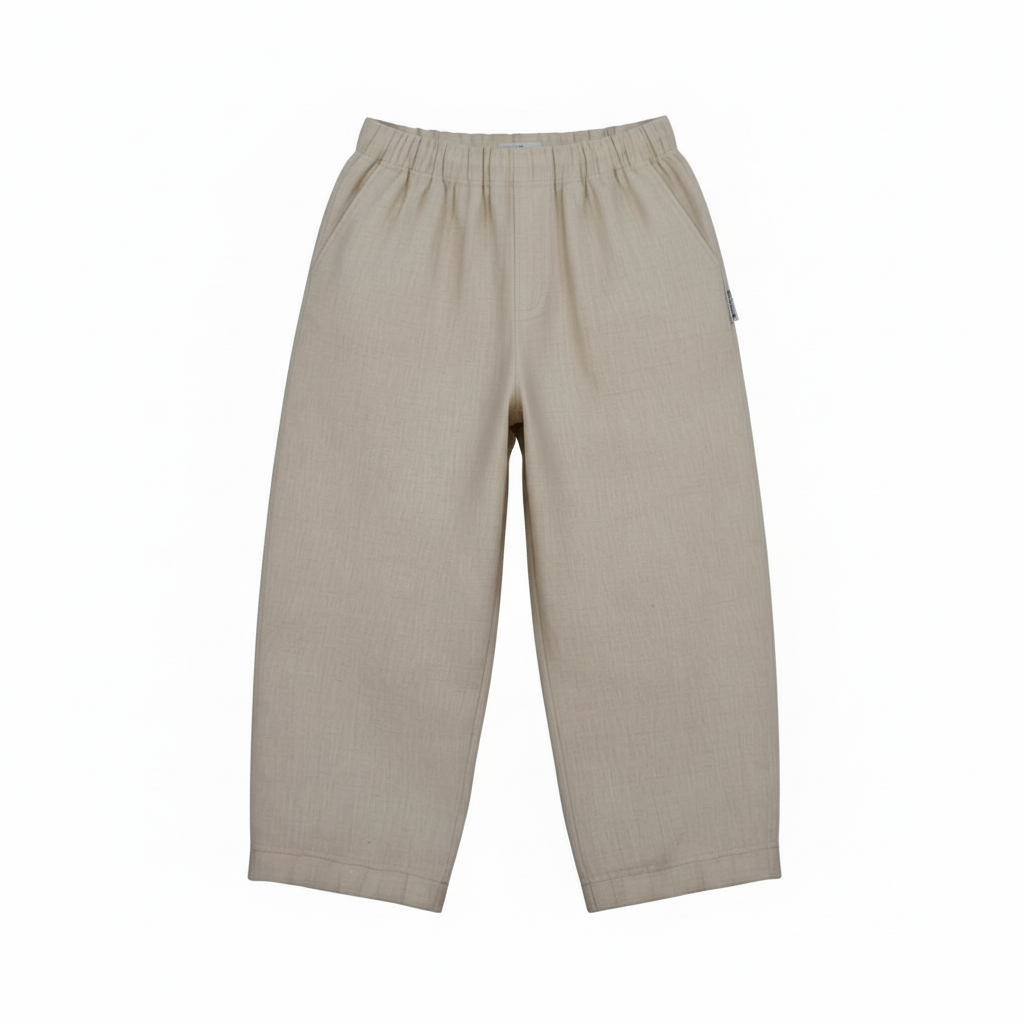 The Kids Linen Pants–Beach are a breezy, unisex style made from premium French-grown flax linen, featuring a soft cool white tone with a speckled texture — part of our neutral color range. One of eight colors in our linen pants collection, this style is designed to pair effortlessly with our printed and solid linen shirts for kids and adults.