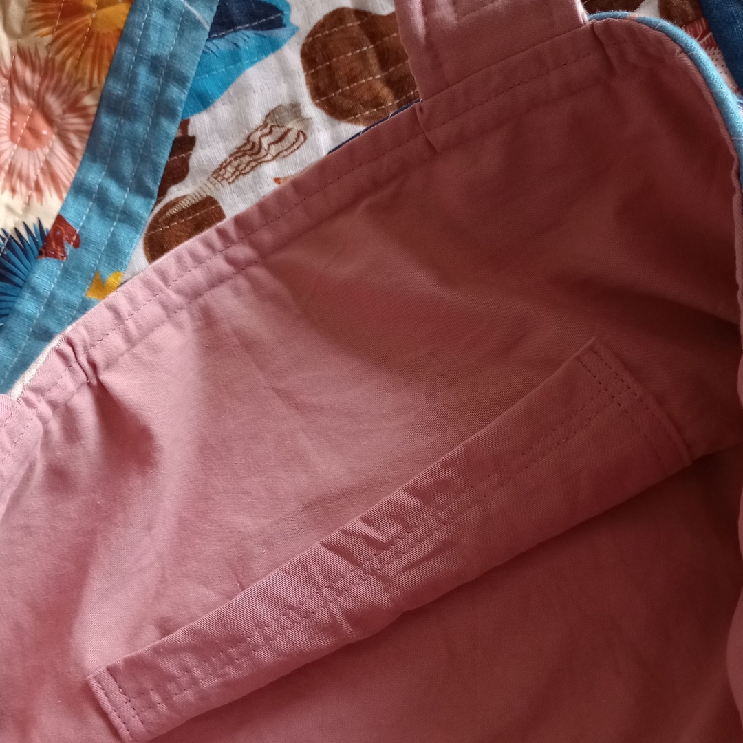 Each piece of fabric is carefully cut, added, and quilted, creating a rich texture that makes every bag unique. A true labor of love—this patchwork beauty takes hours to assemble, stitch, quilt, and finish. Built with four layers for durability, the outer patchwork is attached to batting and lined with soft cotton voile, while the interior features sturdy cotton twill lining in a beautiful pink shade. A large inner pocket adds practicality, and the long straps (90×5 cm) make it easy to carry over the shoulder.